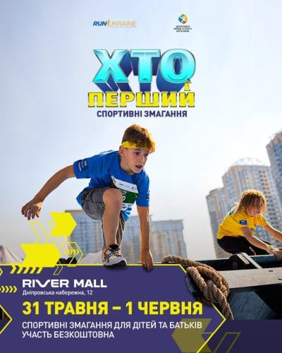 ХТО ПЕРШИЙ — мегадрайвове змагання для kids & teens (7–14 років), яке вже втретє відбудеться у Києві. Це твій час блиснути: показати силу, реакцію, витривалість💥